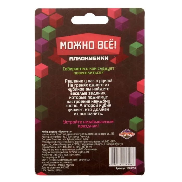 Купить кубик "можно все", алкокубики для принятия решений от 60 руб. с доставкой до пункта выдачи в Кулебаках. Интернет магазин ДекаМаркет. Оплата при получении.